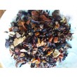 Ingrédients : Fleurs hibiscus - morceaux de pomme - raisin- morceaux de carotte - morceaux de betterave rouge - écorces d'orange - arôme naturel de fruits et d'épices ( contient d'amande) morceaux de canneberge - morceaux de datte - morceaux d'argousier - cannelle - graines de grenadier ( 1%) - clous de girofle